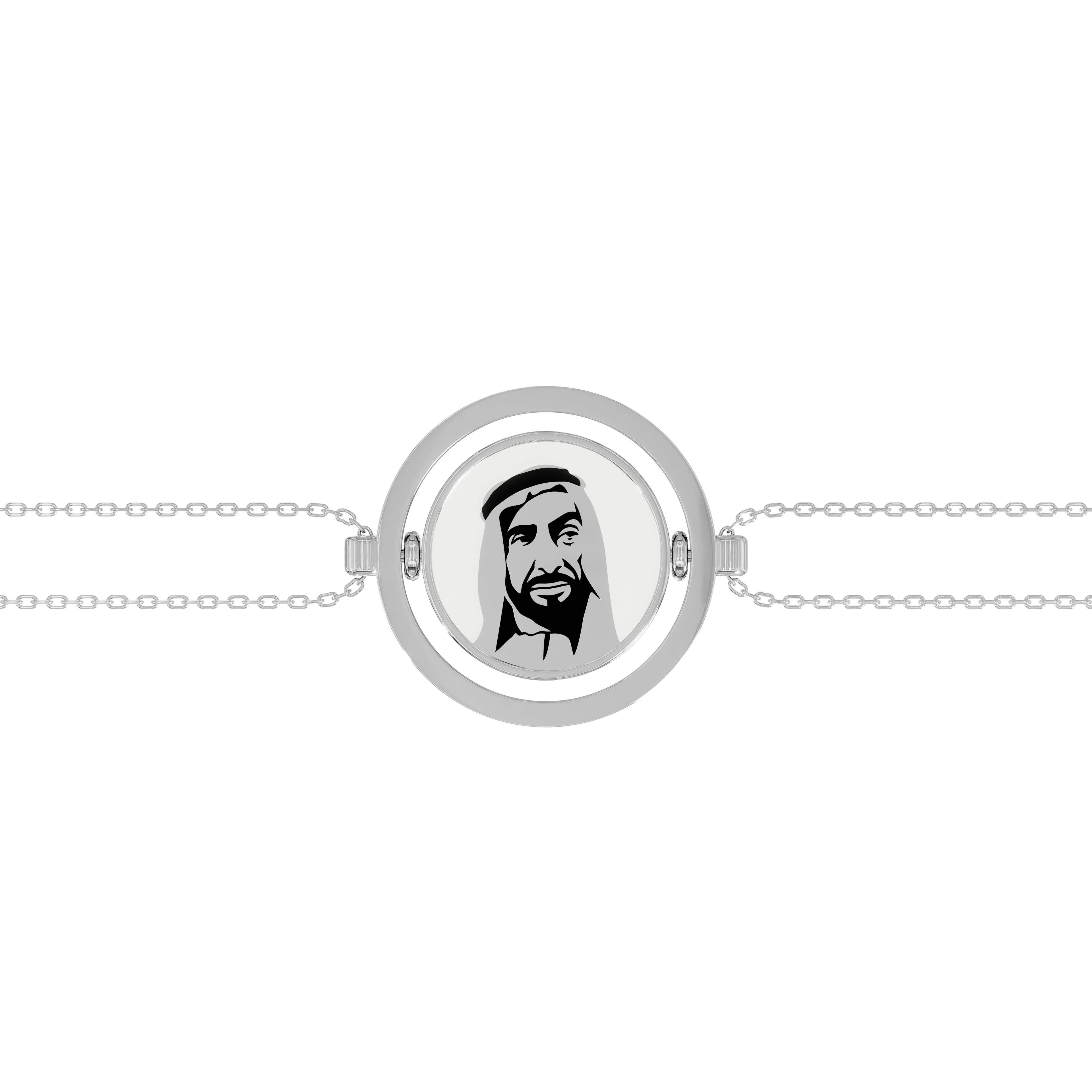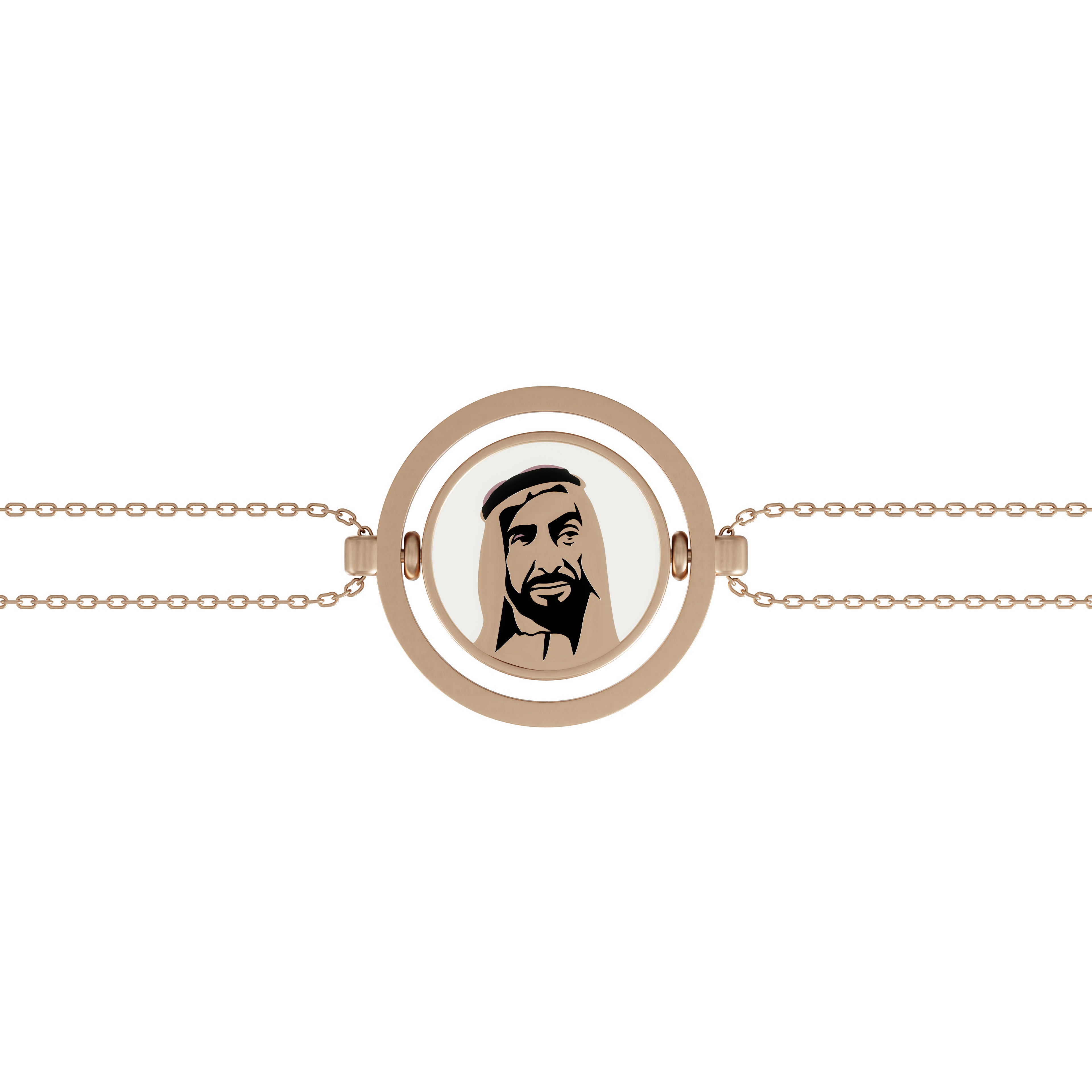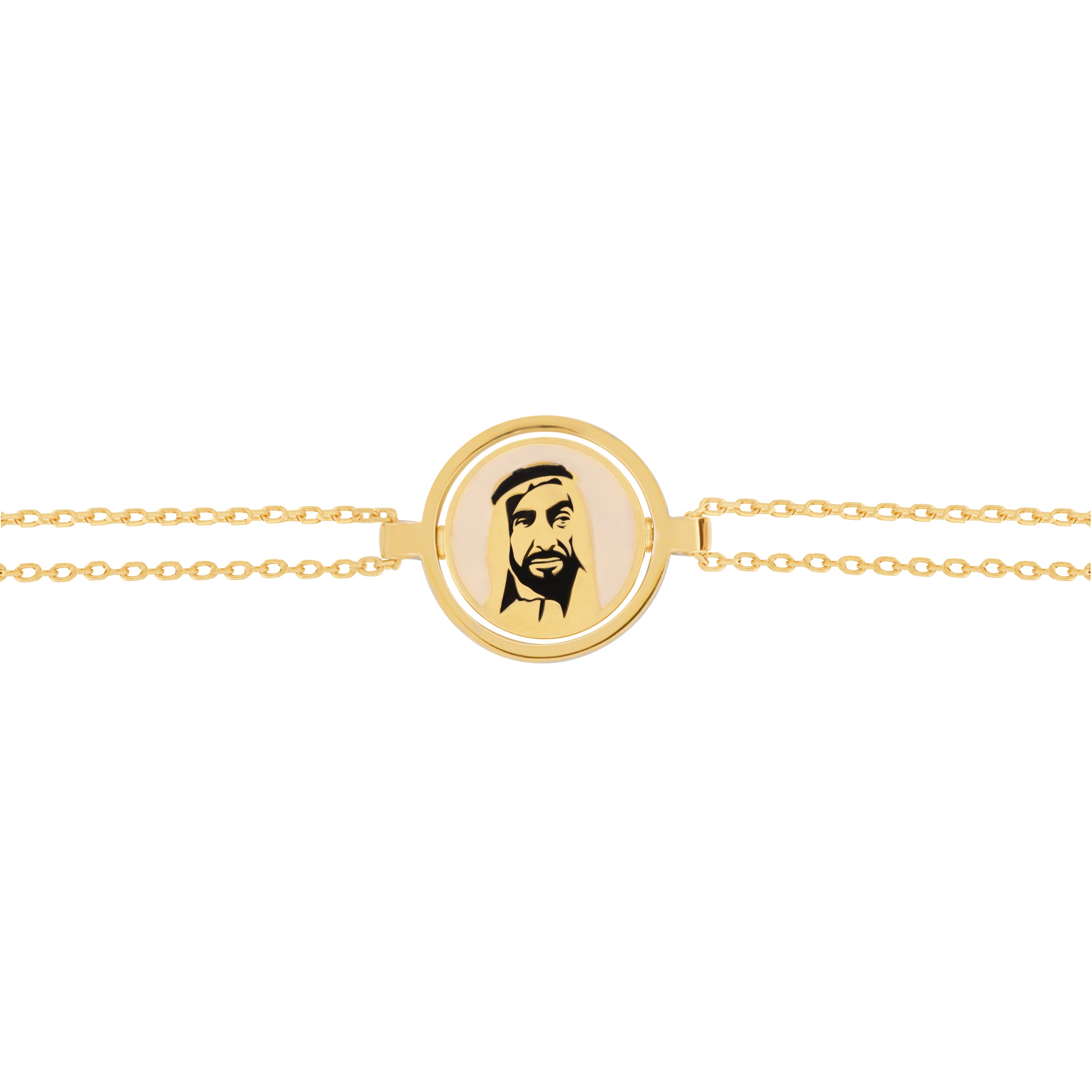 Each exquisite 18k gold bracelet features the iconic Dirham, a symbol of prosperity and unity. On the reverse side, we feature the esteemed portrait of the visionary founder, the late Sheikh Zayed Bin Sultan Al Nahyan, an enduring symbol of leadership, unity, and forward vision. Meticulously crafted and adorned with vibrant enamel, these pieces harmonize tradition with opulence. Wearing the "DIRHAM" embraces the UAE's enduring legacy and pays tribute to the visionary who shaped the nation's remarkable journey.