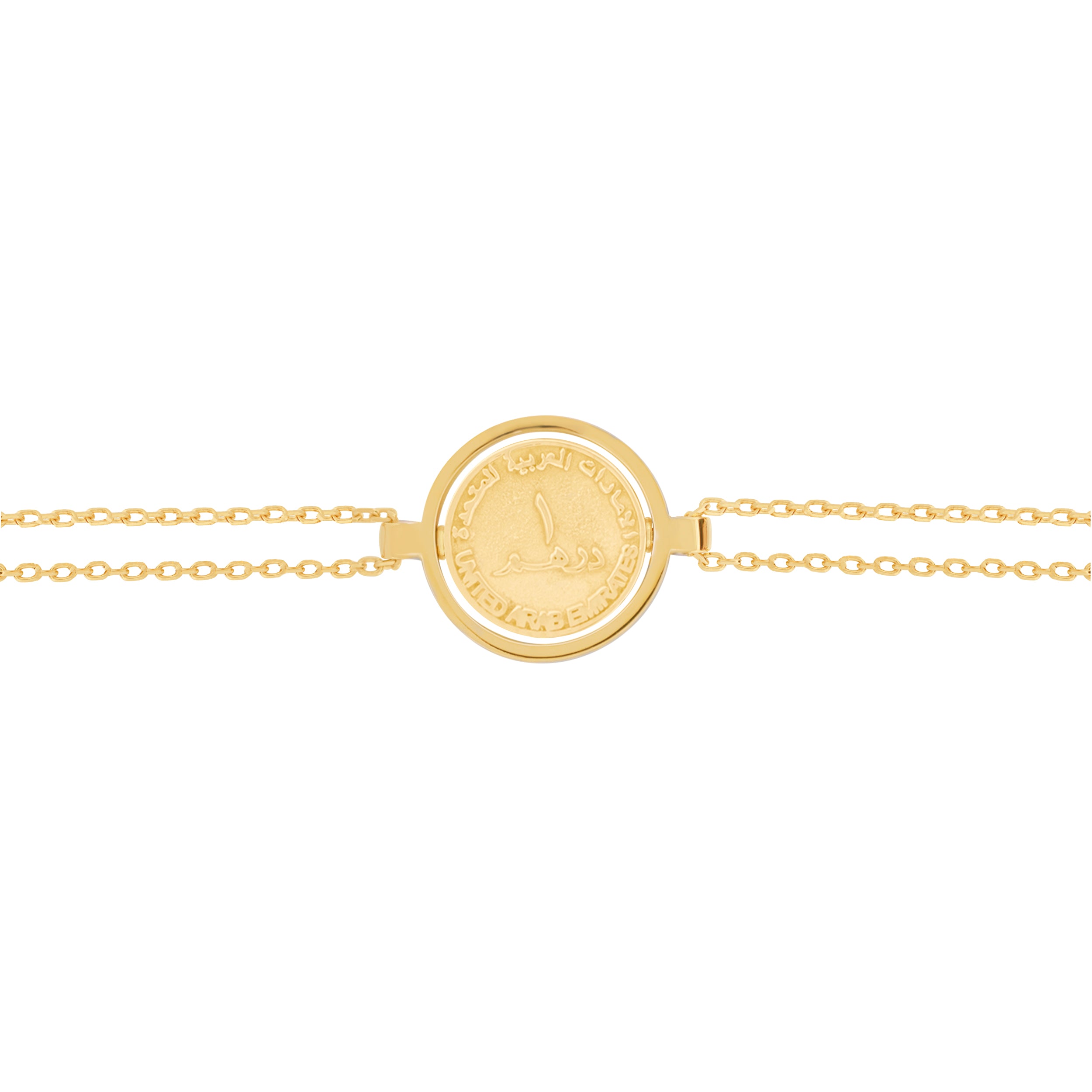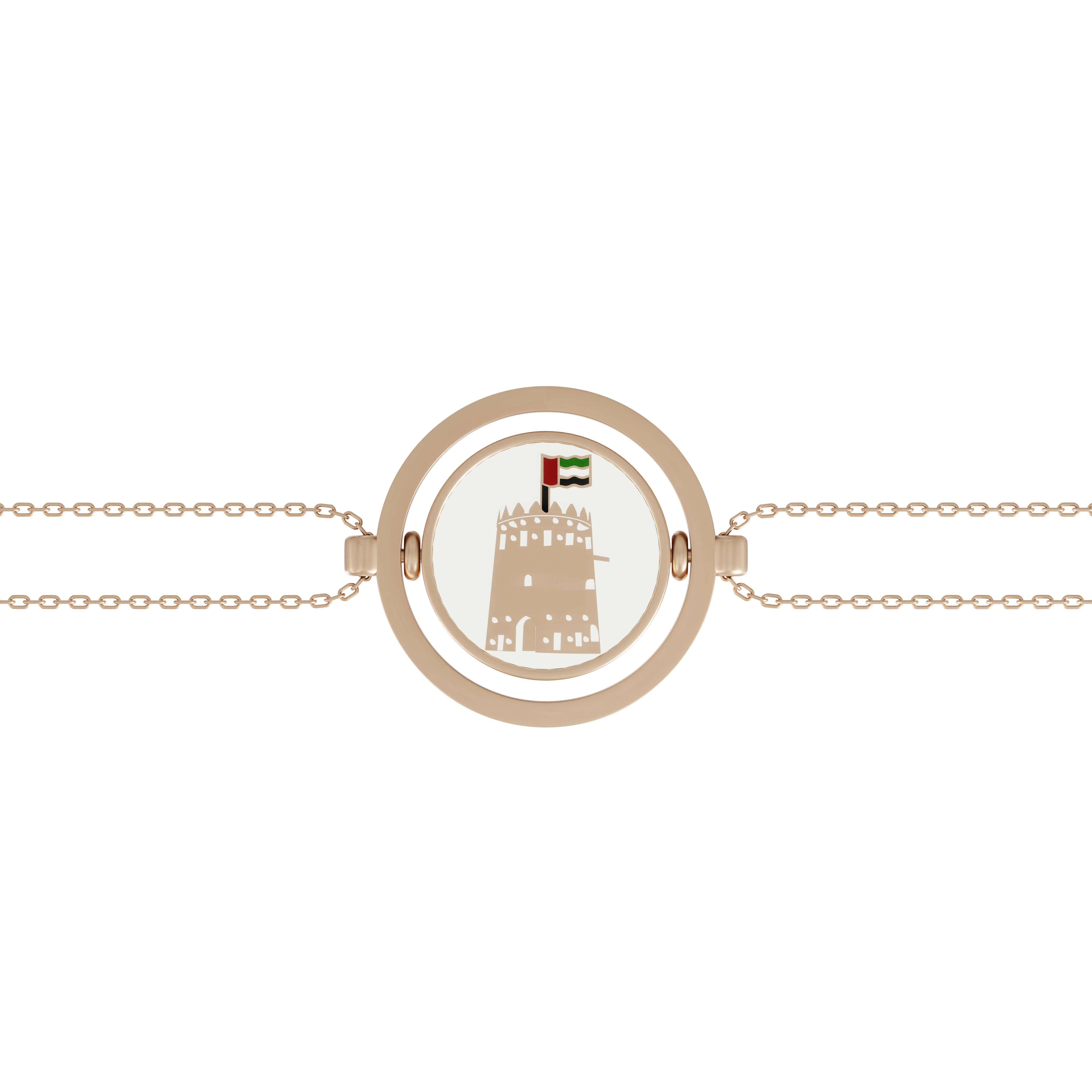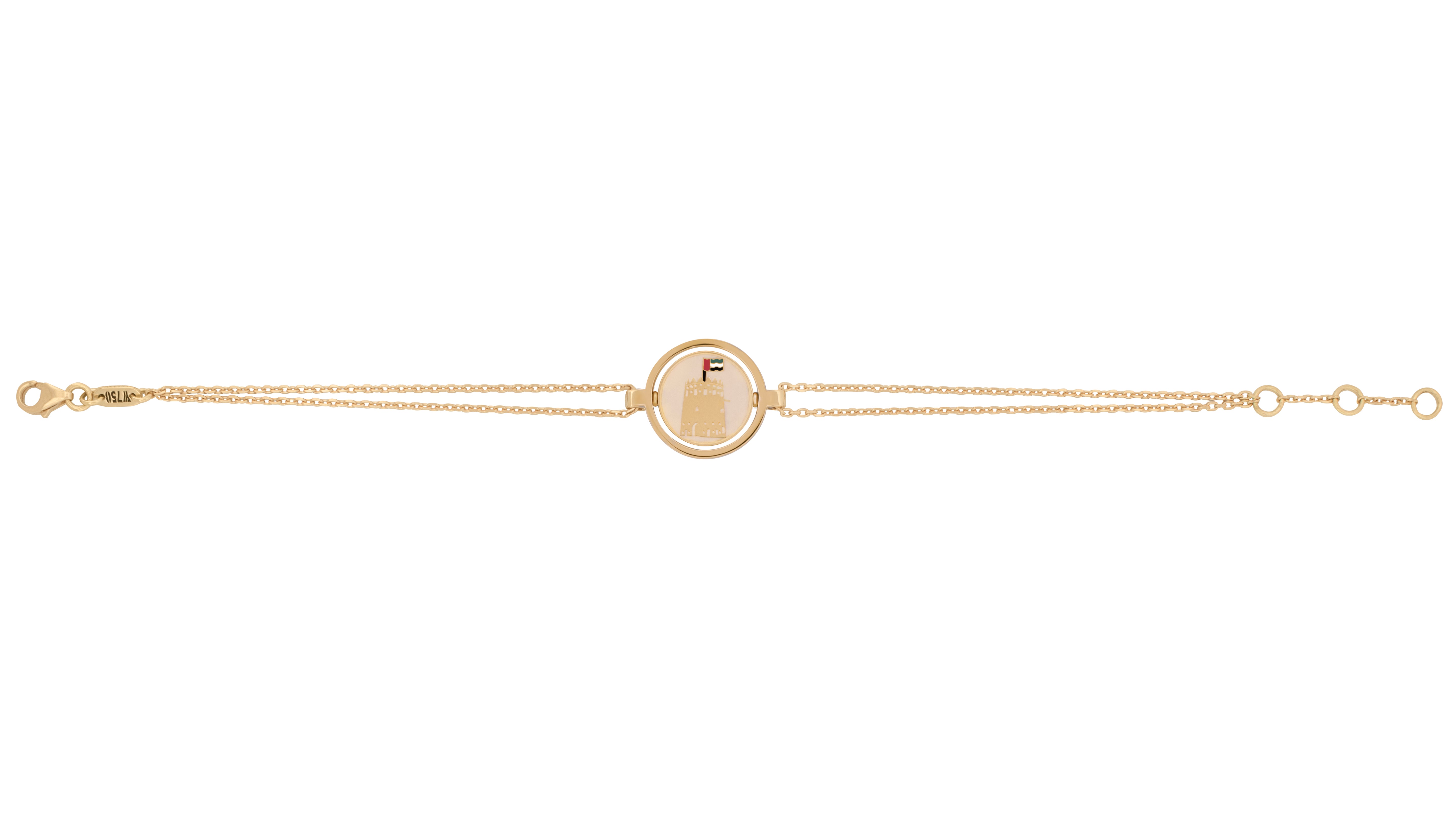 Each exquisite 18k gold bracelet features the iconic Dirham, a symbol of prosperity and unity. On the reverse side, we have chosen the historical fort, representing the nation's unyielding spirit, fortitude, and deep-rooted heritage. Wearing the "DIRHAM" pays homage to the UAE's unwavering strength and timeless legacy. Embrace the essence of this remarkable nation with elegance and grace.