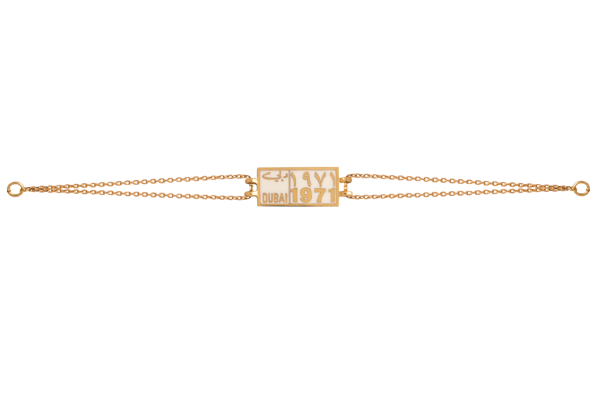One side reveals a delicate gold recreation of the 1971-era Dubai license plate, a nostalgic tribute to the emirate’s early days before its transformation into a global icon.